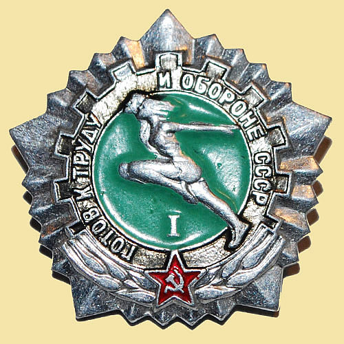 С 1 марта 1972 года был введен первый физкультурный комплекс "Готов к труду и обороне" (автор - з.м.с. СССР Е. Колокольников). Созданный им значок представляет собой пятиконечную звезду диаметром 22 мм. Поверх звезды наложена шестерня, охваченная снизу двумя расходящимися колосьями.