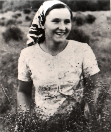 В. Лощенкова - ученица Мурыгинской школы, награжденная путевкой в лагерь "Артек" за успехи в операции "Лен", 1975г.