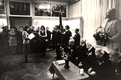 В музее-заповеднике комсомольские организации г. Смоленска вручали рапорты ЦК ВЛКСМ к 60-летию Великого Отября, октябрь 1977г.: